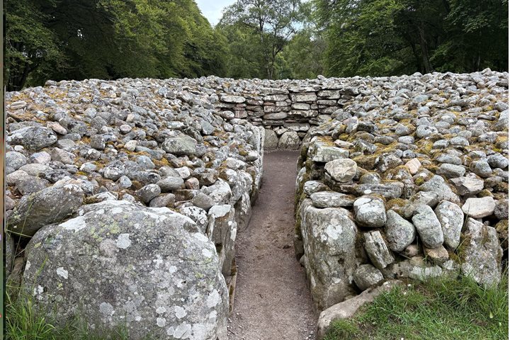 In the afternoon, from our final berth in Muirtown Basin, Inverness, we visited the award-winning Culloden Battlefield Visitor Centre, with its superb interpretative exhibit and the heather moor itself, now coming into bloom, to walk and explore. It was here in April 1746 that the Jacobite cause was crushed by government forces ushering in a generation of punitive polices directed at treacherous, Catholic Gaels in the highlands and islands of Scotland. We then moved on to Clava Cairns, a late Neolithic/early bronze age site containing solar-oriented burial cairns and megalithic monuments.