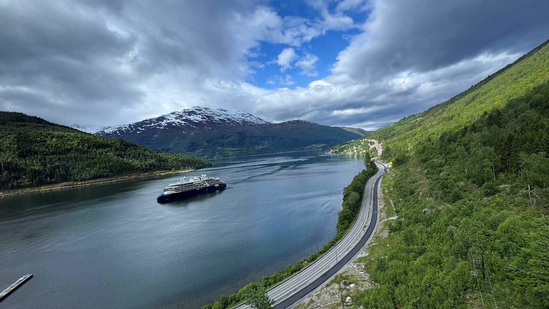 This morning, we woke to stunning views of glassy calm waters of Innvikfjorden, surrounded by towering, snowcapped mountains. Our guests had a choice of either visiting the spectacular Jostedal Glacier, the largest glacier in continental Europe, or to take a boat cruise off Kjenndalsanden.