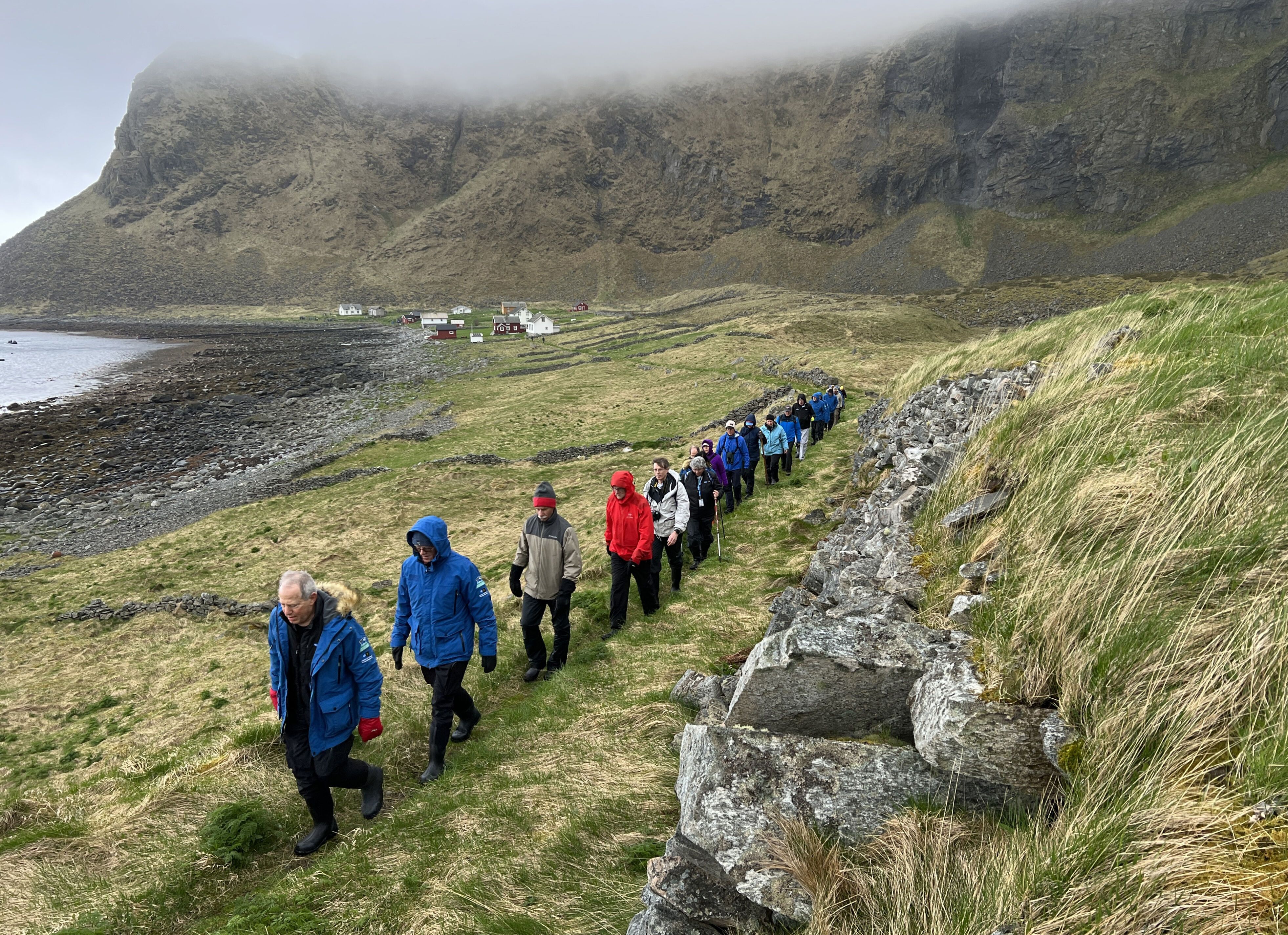 This morning, we woke up just off Værøy, one of the outer Lofoten Islands. For centuries, this has been a core area for cod fishing. After breakfast, we set ashore at Måstad on the southern side of Værøy. The primary livelihoods of fishing, agriculture, and bird hunting made this old fishing village one of the most unique settlements in Norway. Måstad had approximately 150 inhabitants up to World War II. The lack of roads, electricity, and a good harbour resulted in the closing of the only store in 1940, followed by the local school in 1953. The last residents left in 1974, and the last inhabitant of Måstad died in 1982. Today, the few remaining houses are a precious link to their descendants and are carefully restored and maintained as summer homes.
