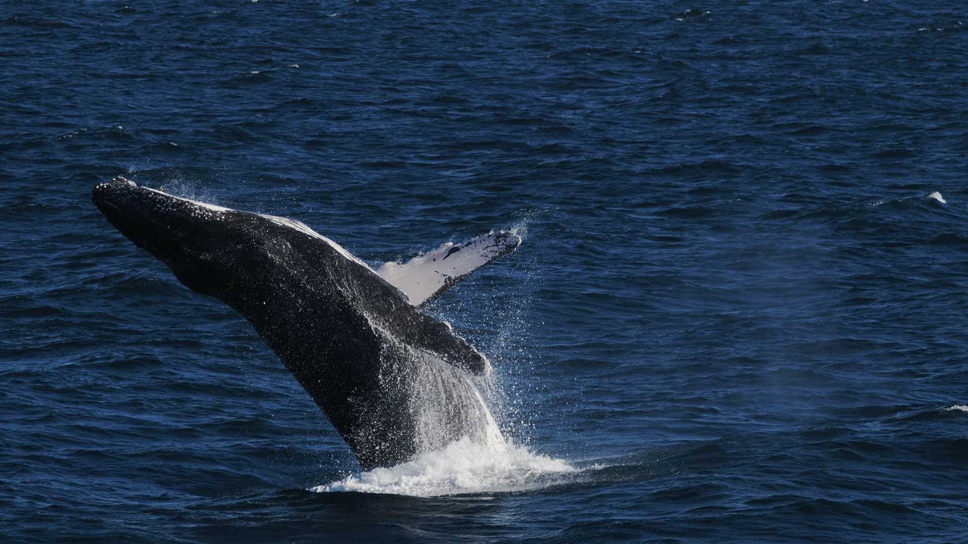 By late morning we passed by the iconic “Land’s End” of Cabo San Lucas, the southern tip of the Baja Peninsula. From there the wind calmed and the ocean flattened because of the wind shadow of the peninsula and the conditions became perfect for wildlife viewing. And find it we did! Before long, we saw whale blows from all sides. Pairs of grey whales crossed the bow while humpbacks breached in the distance. Hammerhead sharks swam alongside the boat, which is always a joy to see. We zigzagged along the coast of Los Cabos. We watched a cow and calf pair of humpbacks breach in tandem repeatedly. A large humpback surprised us by breaching close to our stern.