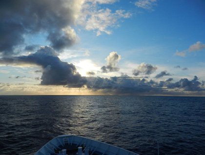 The island measures about 4.5 miles (7.5 km) north to south in length and rises up to 260 feet (80 m) in height above sea level with a spectacular vertical cliff around most of the island’s edge. The exposed rock represents hundreds of thousands or millions of years of coral growth that built up before the island was geologically uplifted on its volcanic core. Makatea Island has a fringing reef, which in addition to the cliffs, makes for a difficult access to the island. The mining interests constructed an artificial harbor on the northwestern coastline, where we were able to gain access to the shore in the early afternoon. Many of us walked up a steep hill for a distance of about 250 yards (about 250 m) and then continue three miles (about 4.5 km) on a fairly flat road across almost the entire length of the island, which is mostly a flat, pock-marked, exposed limestone plateau, covered in some areas with pisonia trees, screwpines or pandanus trees, banyan trees, and endemic Tuamotu palms, as well as beautiful ground orchids, tiger claw lilies, rosy periwinkles, and many other flowering plants. We could also see some of the remnants of the phosphate mining operations that took place those decades ago, including rusted out winches, gear systems, rails, and even a small locomotive. At one point, we walked off the main road to an overlook where we enjoyed a beautiful cliffside view. A little ways beyond that, we reached a picturesque grotto where many of us swam in cool, clear, fresh water. The ceiling overhead was festooned with stalactites, and many of us worked our way far back into an awesome hidden cave system. The bird watchers among us were especially happy to see some interesting birds on the island, including Polynesian pigeons, Makatea fruit-doves, Tuamotu reed-warblers, tropicbirds, noddies, crested terns, and white terns. Some locals helped us out with rides on old flatbed trucks … which was very much appreciated by all.