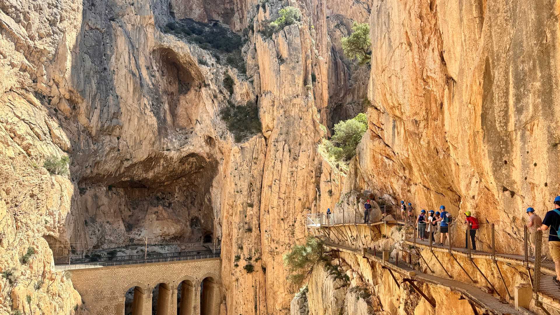 Those bound for the Caminito del Rey walkway soon found themselves on the mountain paths and suspended walkways in the dramatic El Chorro Canyon. Stretching for five miles, the pathway was constructed in the 1900s to provide access to a newly built dam, but by the 21st century had fallen into disrepair. After an extensive renovation, it was reopened as a heritage trail in 2015.