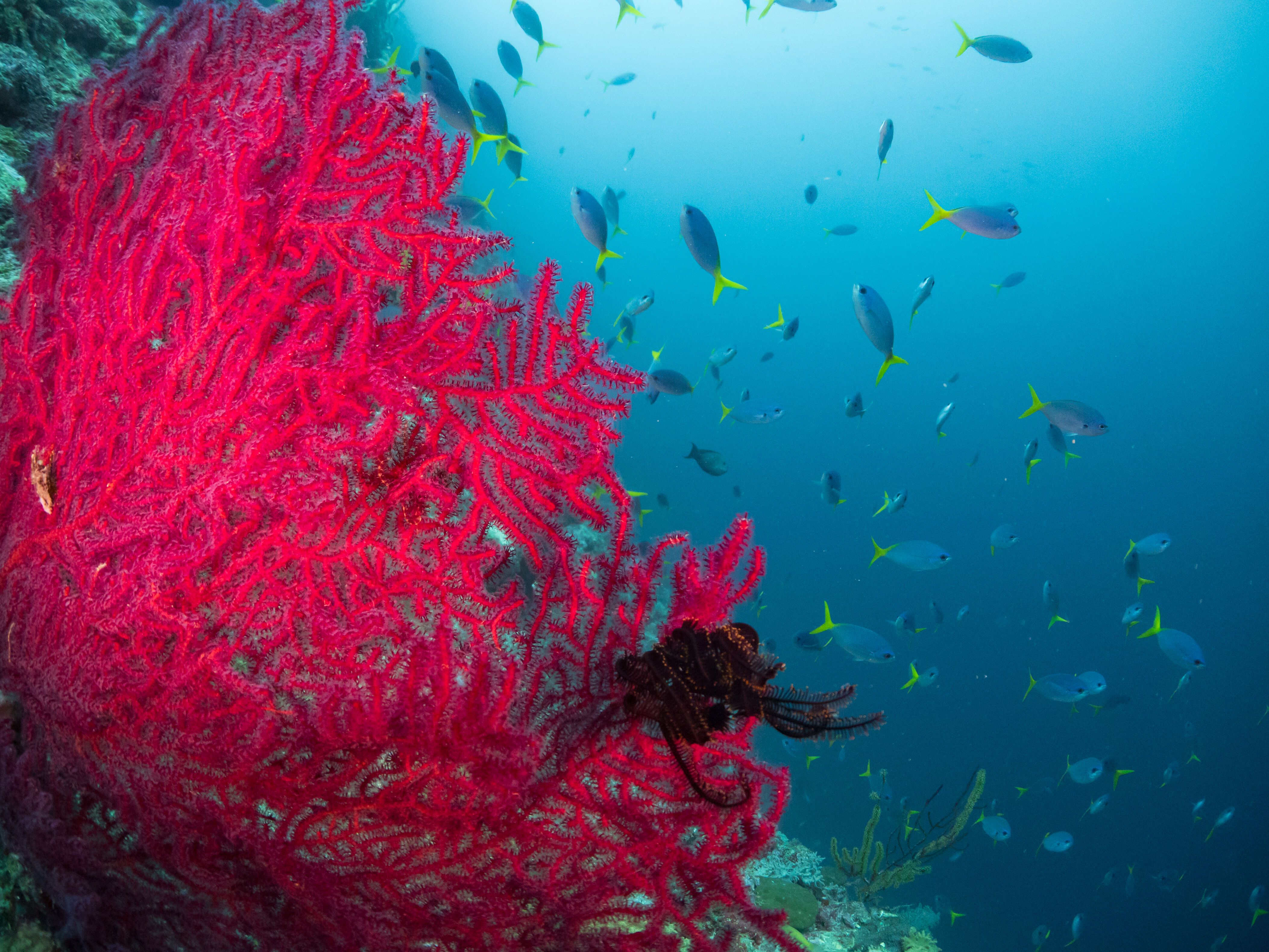 The focal points this morning were the island’s lush forests — including a set of limestone pools that were once the legendary home of two mermaids — and crowded Manus market. The market was overflowing with local dresses, bags, and dozens of varieties of island fruits, vegetables, sugarcane, and other staples. To beat the tropical heat (a balmy 31C/88F and 85% humidity), later in the afternoon we visited an incredibly vibrant coral reef extending along the coast of neighboring M’Buke island for snorkeling and diving. A lucky few stragglers on the last boats before sunset were treated to a few more gifts from the island: visits by friendly island locals bearing fresh coconuts, a pod of spinner dolphins, a Bryde’s whale, and the elusive green flash as the sun dipped below the horizon! I just missed the flash … I guess we’ll have to spend a few more days along the northern coast of Papua New Guinea and try again?