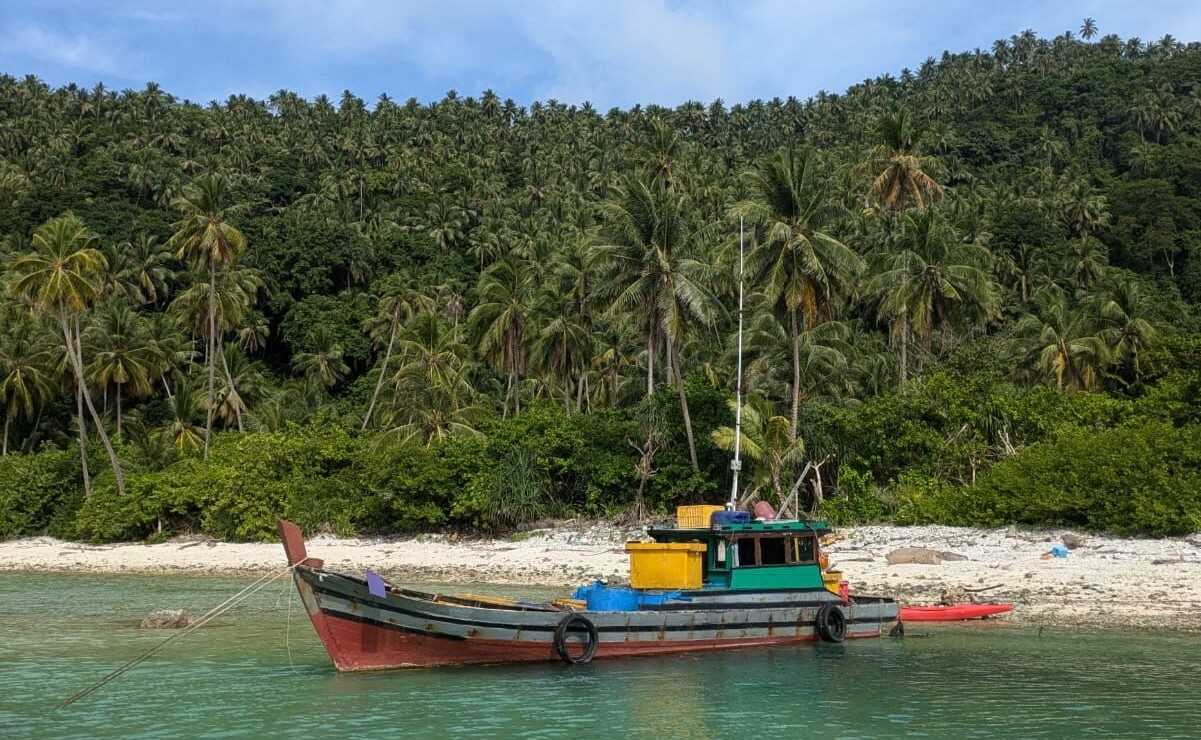 Afternoon brought favorable conditions for a snorkel and glass bottom Zodiac ride in the pristine seas of Pulau Mentebung, in the Badas Islands.