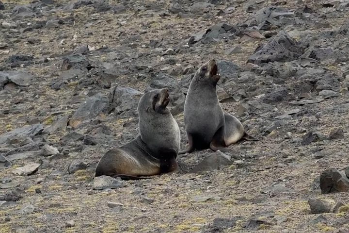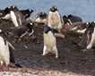 This morning, National Geographic Explorer guests awoke to calm seas and little wind in Orleans Strait. After breakfast we dropped anchor in Mikkelson Harbor and the fog lifted as we headed to the small island of D’Hainaut (aka Bombay) for our morning landing. At the landing, there was evidence of the area’s past in the form of ribs of an old boat peeking through the snow. Before we headed up the hill to the gentoo colony, a naturalist shared the history of whaling in the area and the floating factories that moored here in the summers of 1910-1917. Whale bones around the water boat helped to tell the story of this interesting, yet grim past. Exploring further from the landing, we observed the amazing dynamics of the gentoo colony.