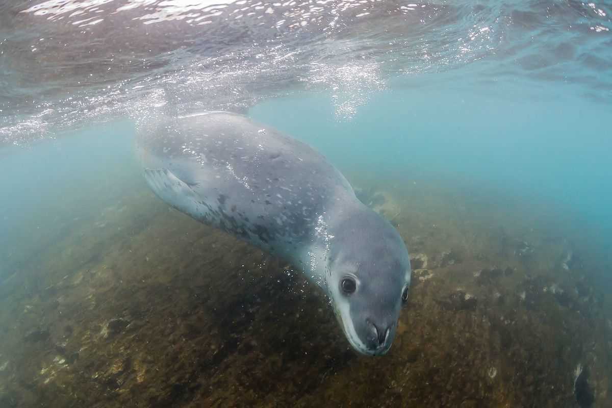There wasn’t a lot of activity in and out of the water, and we soon realized why. We could see three leopard seals in the small bay, swimming among the icebergs. This species of seal is responsible for more predation on warm-blooded prey than any other pinniped. While krill makes up a large part of their diet, they’ll also patrol penguin rookeries, to attack both adults and newly fledged chicks. They also go after juvenile crabeater seals.