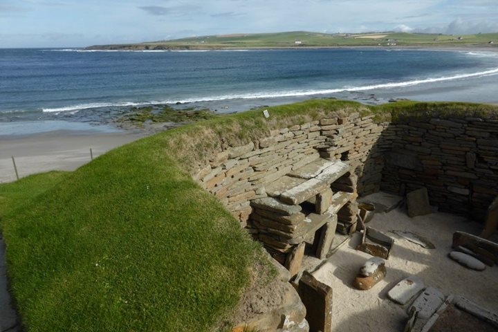 A morning of sunshine and showers saw us driving westwards from Kirkwall through the green pasture land and barley fields of the Mainland of Orkney, heading for the prehistoric World Heritage Site for which these islands are famous. On the bleak open moorland on a narrow isthmus between two lochs stands the Ring of Brodgar, a henge of huge standing stones surrounded by a deep ditch. This is one of a complex of structures in this area predating Stonehenge and where new excavations are re-writing our understanding of the development of stone circle culture and putting Orkney at the centre of Neolithic Britain. We continued on to the Bay of Skail and the Stone Age village of Skara Brae. Discovered emerging from the coastal sand dunes is a community of circular and interlinked stone-built dwellings, complete with Flintstones-esque furniture of beds, hearths, and dressers with which, in their ordinariness and familiarity, we could empathize. Our return route took us past the 120 square mile natural harbour of Scapa Flow with views across to the village of Stromness, birthplace of Arctic explorer John Rae, discoverer of the fabled Northwest Passage. The British naval fleet was based here during two world wars and Scapa Flow is famous (and infamous) for the scuttling of 74 captured ships of the German High Fleet in 1919, following the end of the First World War and for the sinking of the battleship HMS Royal Oak, torpedoed by a German U-boat in October 1939, early in the Second World War, with the loss of 834 men and boys. Returning to the ship for lunch, we later ventured out on a range of excursions which took us birdwatching, where we saw hen harriers, or hiking on the easternmost coast of Mainland at Mull Head, or exploring the Southern Isles of the Orkney Archipelago, where we visited the remarkable Italian Chapel built by prisoners-of-war in a military Nissan hut. As we cast off from the pier at Kirkwall, the haunting melodies of a lone piper bade us farewell to these far-flung islands off the north coast of Scotland.