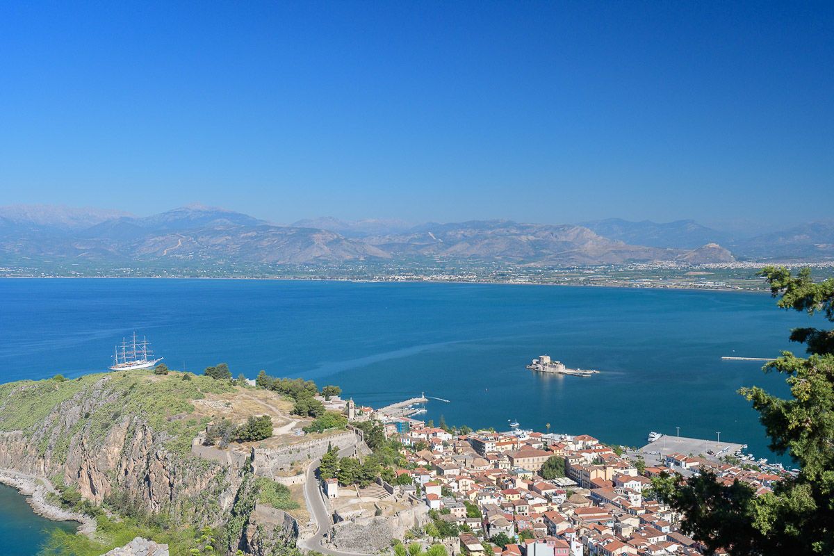 The meltemi winds of the Aegean carried us to Nafplio, a delightful sheltered city in the Peloponnese. Peloponnese means the island of Pelops, so technically we were still on an island, even though it was in the mainland!