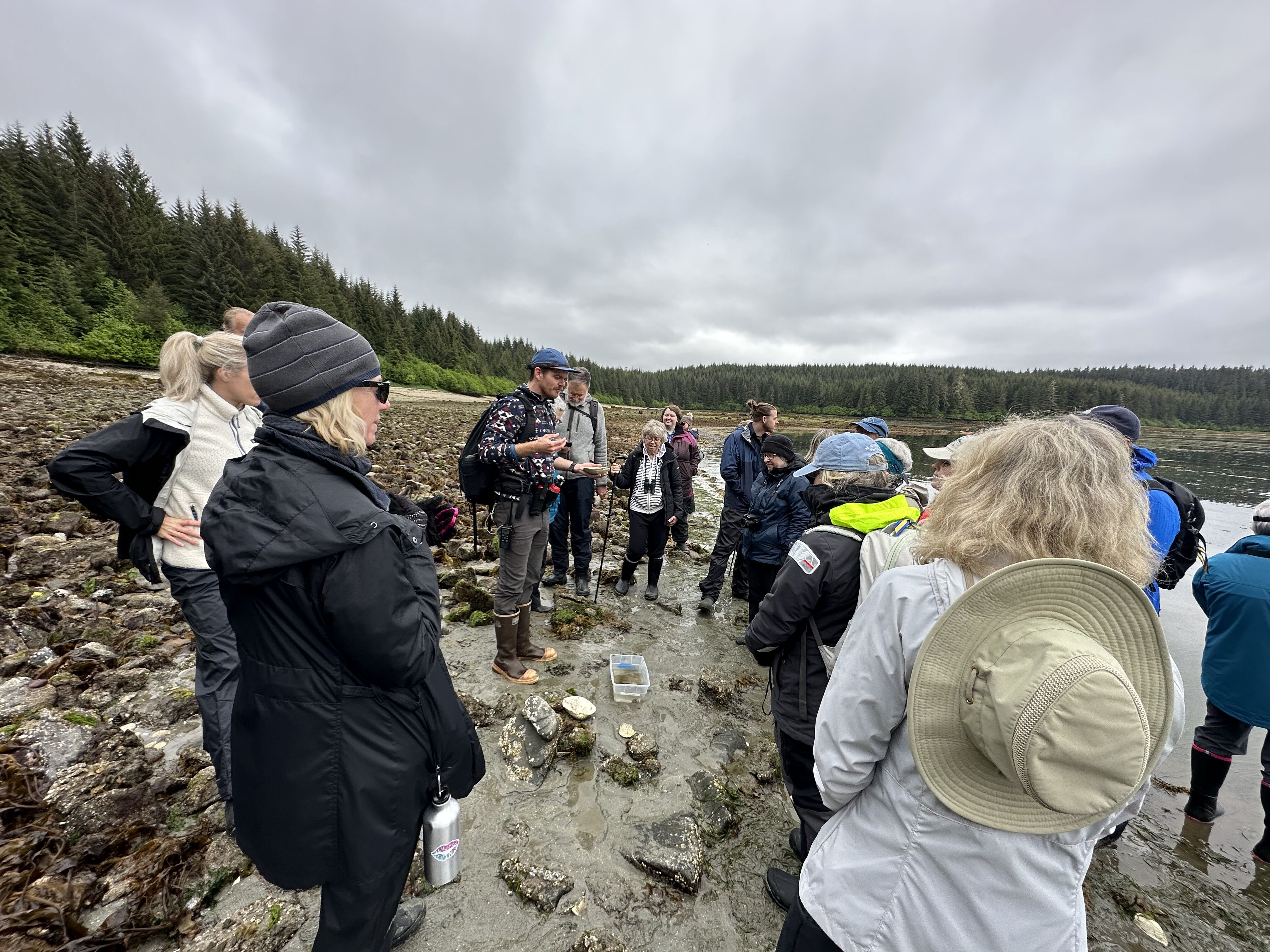 Our naturalists had the pleasure of leading an exploratory bushwhack through the temperate rainforest. From the moment we pressed in past the Sitka alder, we had smiles plastered to our faces. The forest was alive with the sights and sounds of Southeast Alaska - robins and kinglets crooning their tune to accompany the rustle of the wind against the cottonwood trees, carrying their sweet aroma to our noses. On all fours we climbed over boulders, under rocks, and through ravines. We summited the highest point on the peninsula and took in the sweeping panoramic views before beginning our descent.