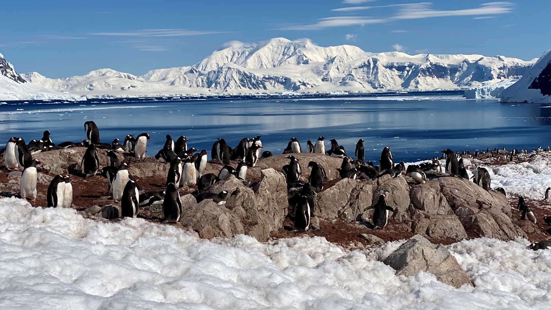 Cruising into Andvord Bay after breakfast, the captain practically parked the ship on the beach at Neko Harbour for our morning activity. On shore, we visited our last gentoo penguin colony and observed two Weddell seals hauled out on the snow and one on a piece of ice. Hiking up the hill, we had an incredible view of the surroundings and Mount Français, the tallest mountain (9,168’) on the peninsula. After lunch, we cruised up the Gerlache Strait and entered Dallmann Bay, where we had wonderful encounters with humpback whales. What an incredible end to an extraordinary trip around the Weddell Sea and the Antarctic Peninsula.