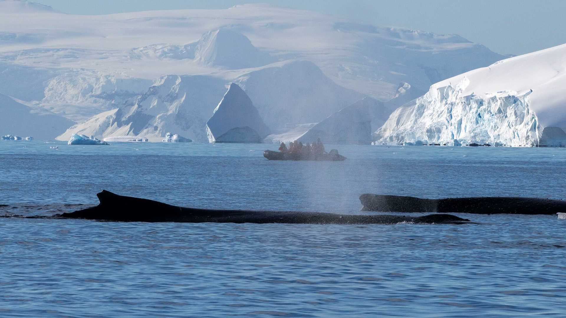 In the afternoon, we ventured to Wilhelmina Bay, often called "Whale-mina Bay" for good reason. Framed by jagged, ice-draped mountains, this vast, icy expanse is a prime feeding ground for whales, drawn to its nutrient-rich waters. Humpback whales, dozens of them, welcomed us, their graceful movements mesmerizing. Aboard our Zodiacs, we drifted among these gentle giants, listening in awe as their deep, rhythmic breaths echoed across the bay.