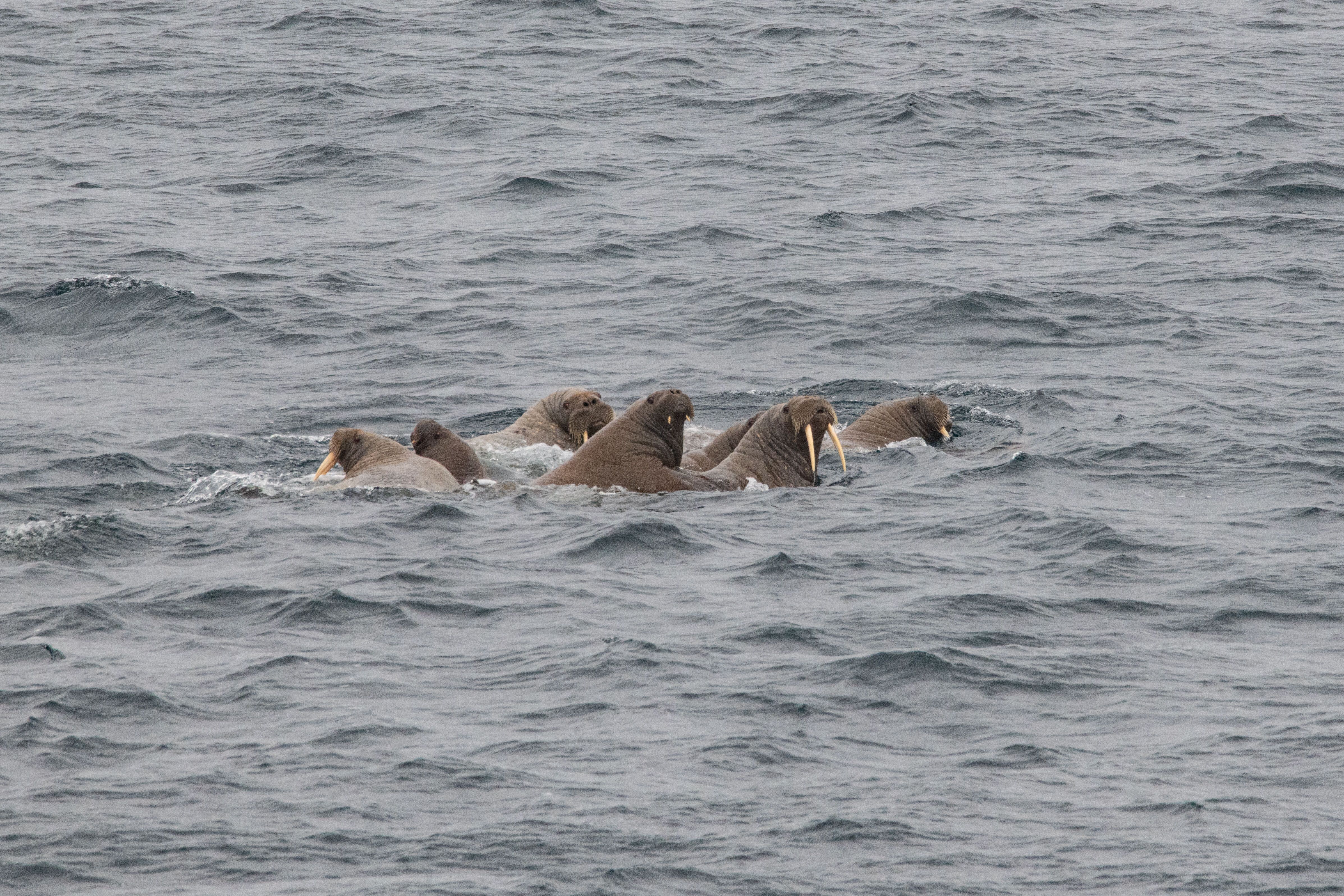 When we awoke, National Geographic Resolution was headed toward the island of Nordaustlandet. After breakfast we were privileged to observe the magnificent glacier, Austfonna, the biggest glacier in Europe! This glacier almost fully covers Nordaustlandet. We cruised along the glacier wall, observing beautiful shapes of ice, from high cliffs to deep blue caves. We also were lucky to spot several groups of walruses in the water! We stood on the outer decks enjoying the glacier, breathing fresh Arctic air as we talked about ice.