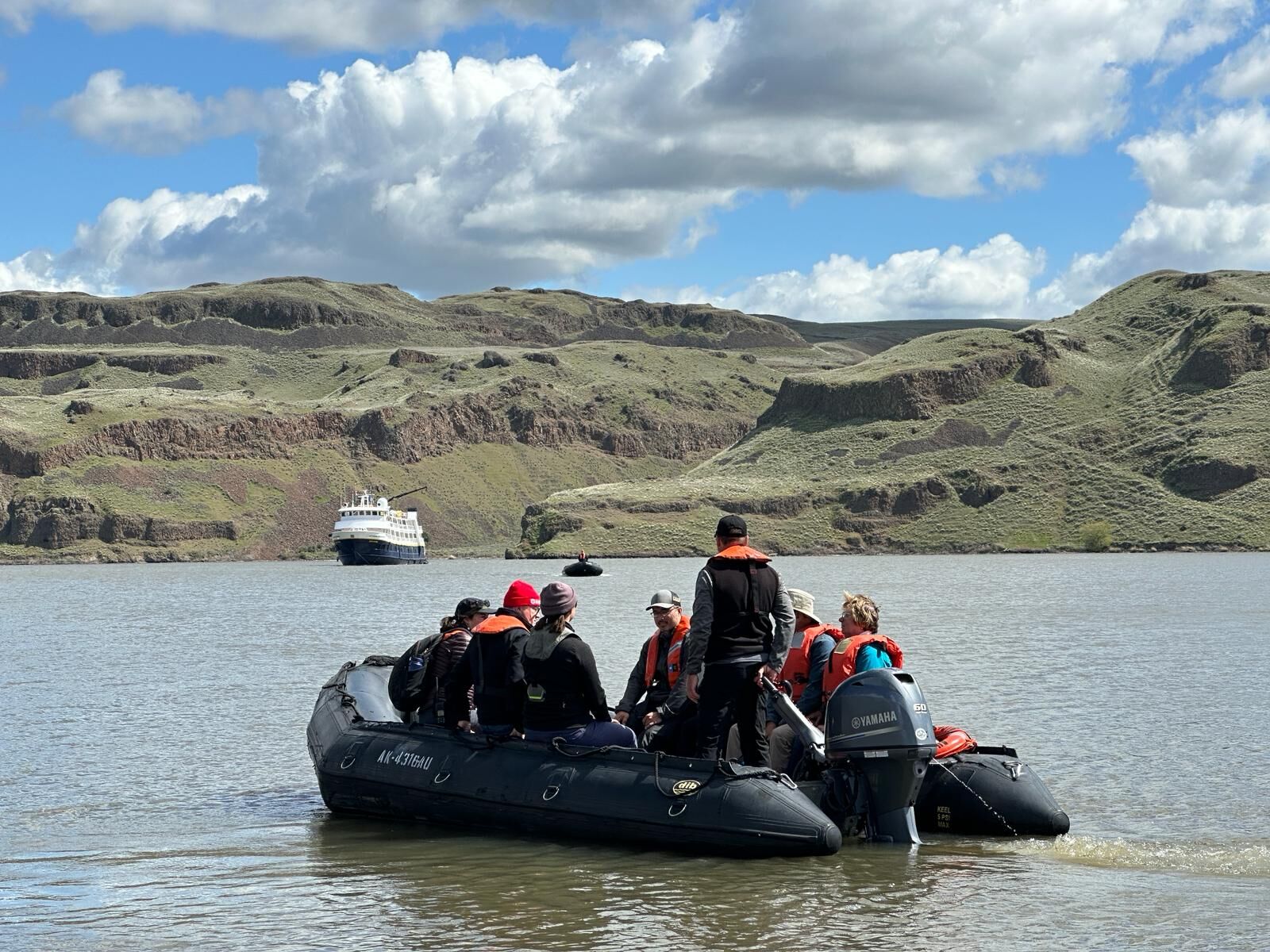 Our day in the Galapagos began at Punta Pitt, where we made a wet landing on volcanic sand, greeted immediately by a baby sea lion and a white morph red-footed booby at the shore. We started our ascent up the hill, spotting numerous red-footed boobies along the way and even a blue-footed booby! The landscape was breathtaking, with vibrant red hues in the vegetation and layers of orange tuff stone creating a stunning backdrop. In the afternoon, we explored Cerro Brujo on the western side of San Cristobal Island. After landing on semi-volcanic sand, we strolled among large colonies of sea lions, leading us to a stretch of pure, powdery white sand. We joined our wellness specialist for a stretching session, then walked along the beautiful beach, marveling at the unique volcanic landscape around us. Before the sun set, we returned to National Geographic Islander II and our captain took us to Kicker Rock, an iconic eroded ash cone and a nesting site for many seabirds. With the rock glowing in the evening light, our guests raised a final toast to celebrate an unforgettable day in this extraordinary place.