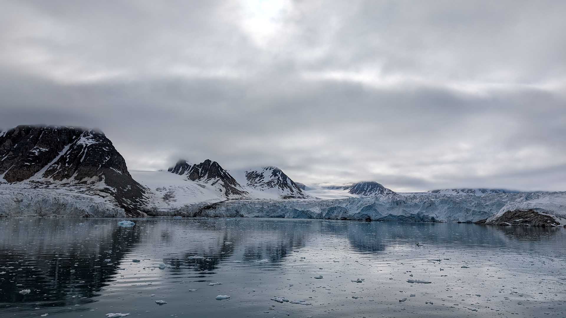 On the first morning of our expedition around Svalbard, during breakfast and morning briefings we had spectacular views of Smeerenburgbreen. After environmental and safety briefings, everyone was looking forward to the first expedition outing. Following lunch, we spent the afternoon around Fuglesongen Island.   Some guests navigated the challenging conditions on the beach to explore the island. We climbed the boulder beach and trekked around the island to a colony of little auks (Alle alle). All were amazed when thousands of the small birds took flight. Returning to the ship, the hikers exchanged hiking poles for paddles and went to the water to experience the bird colony from kayak level. Our afternoon outings were a great introduction to this wild and scenic landscape.