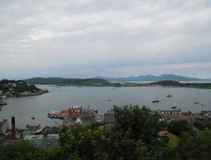 The sun was shining on the placid waters of Oban Harbour during breakfast and all looked good for our planned hike through the town to the peculiar monument known as McCaig’s Folly, sitting high on the cliff above the town. This un-missable stone structure is the Roman Coliseum in miniature and was the brainchild of a 19th century local business man, John McCaig. Today it serves as a great viewing platform, looking out over several adjoining waterways, islands and portions of the mainland. The hike was stiff and steep but well worth the effort. The compensation for the earlier exertions was that we returned to town via the Oban Whisky Distillery where we were given not only a guided tour of the whole facility but also a healthy “wee dram” at the end. This definitely revived our spirits and soul!