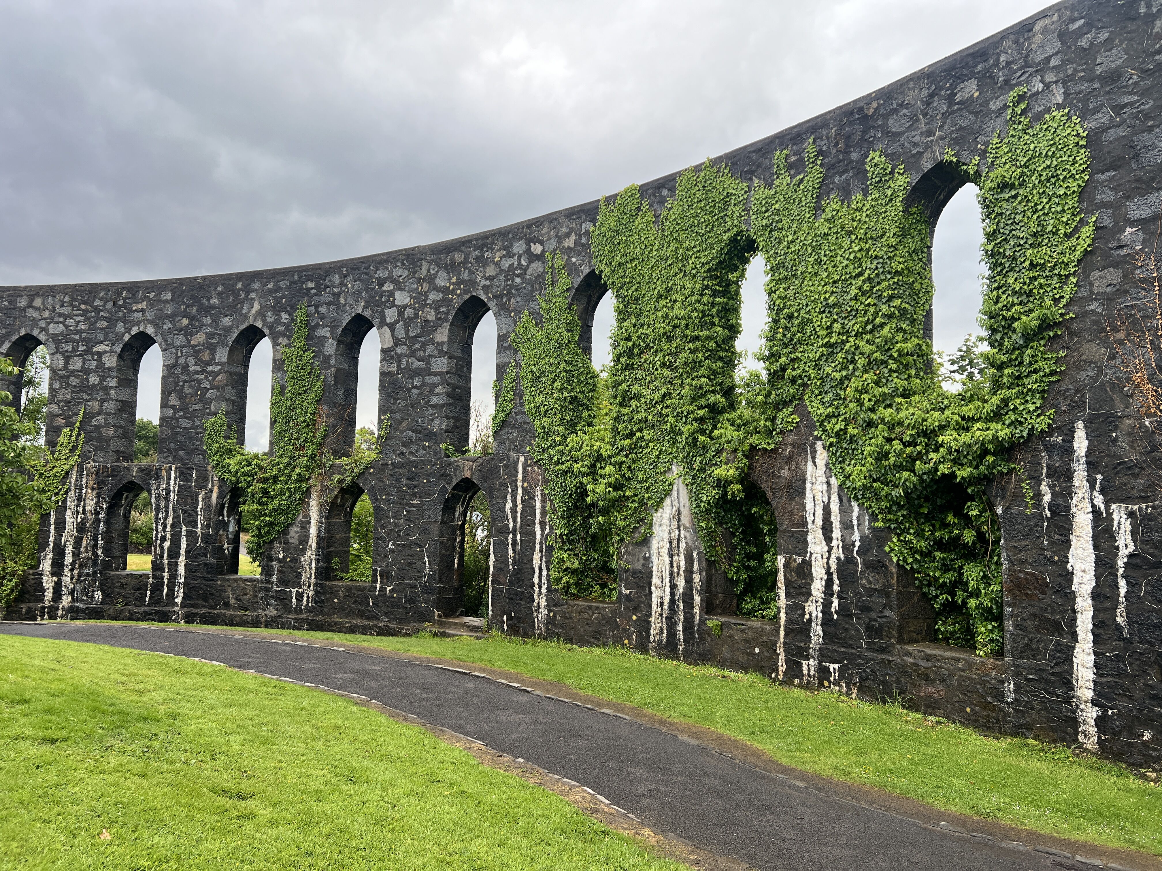 We spent the morning in Oban enjoying a walk to McCaig's Folly, a circular tower above the town built by wealthy banker John Stuart McCaig as a monument to his family. McCaig hired unemployed stone masons to build the monument starting in 1895, and construction stopped when he died in 1902. The tower provided lovely views of the town. Our photo instructor, Anna, gave a talk about smart phone photography and our historian, Robin, gave a presentation on The Road to Culloden.