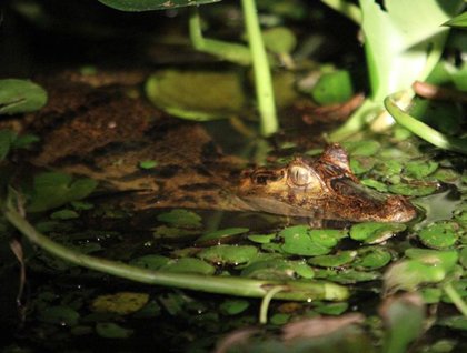 In the afternoon we had a cultural talk about how people live in the reserve, including learning how to use the blowgun. Accompanied by bright sun, but with the breeze hitting in our faces, we started a little earlier than usual at 3:00 p.m. with the intention to go as far as we could inside the Pacaya River.  We arrived to a very large lake known as Yanayacu. The afternoon was very hot, therefore the water felt wonderful. We had the surreal company of several pink river dolphins (inia geoffrensis) that were seen at a short distance swimming in the same place with us. After swimming we continued exploring and our efforts were rewarded by the observation of a couple of troops of the largest monkey species of the reserve, the red howler monkey (alouatta seniculus).