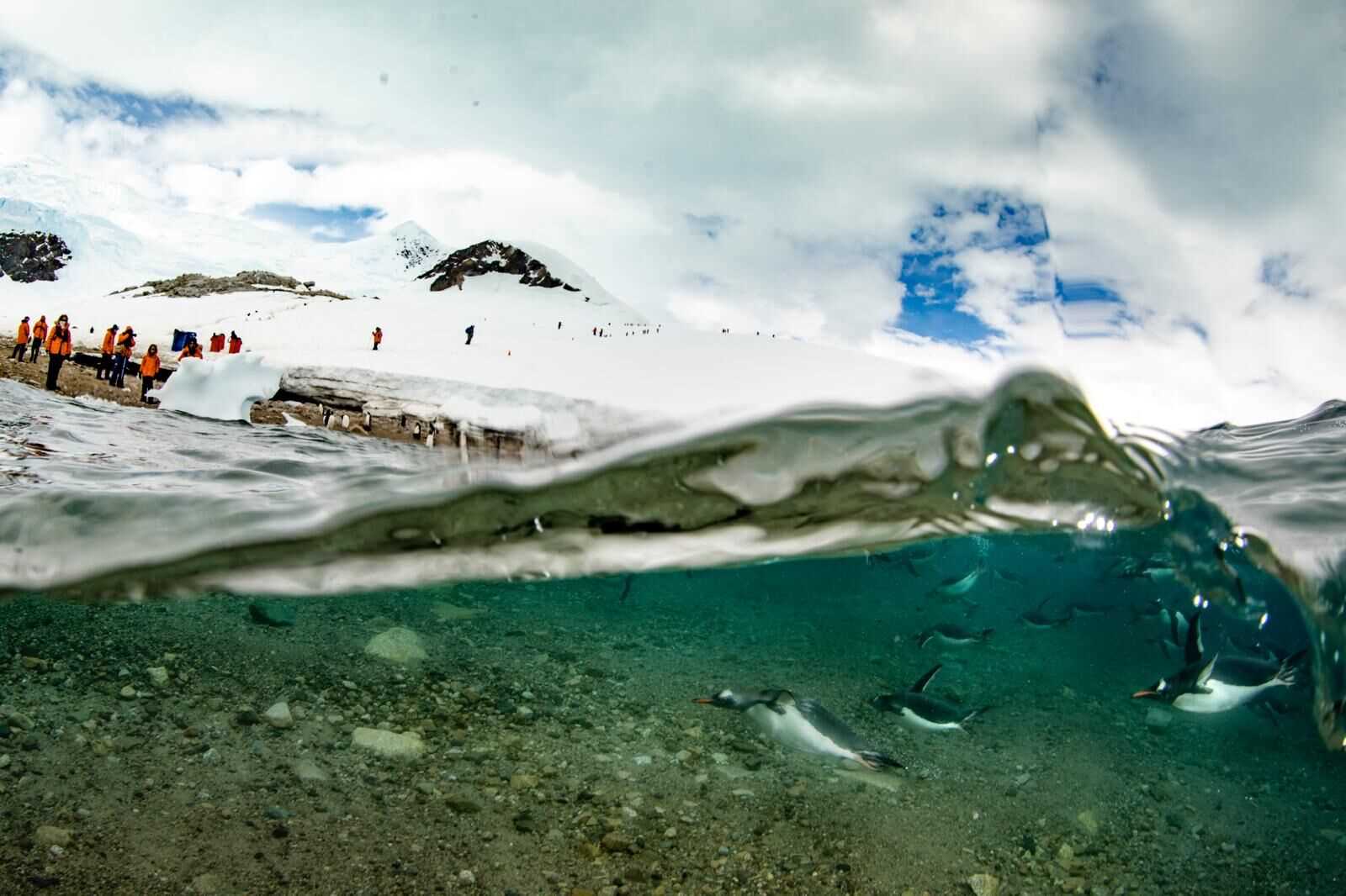 Thinking the day couldn’t get any better, we had favorable winds upon arriving at Neko Harbor. The huge hillside had nesting gentoo penguins sprinkled on the sparsely spaced, snow-free rocks. One could hike up a great snowy hillside for a spectacular view overlooking the adjacent glacier and penguin colonies! The excitement was palpable when a good chunk of the glacier calved nearby and continued in full force. Then we managed to spot all three species of brush-tailed penguins among the gentoo colony!! It was an exciting day full of wonderful surprises.