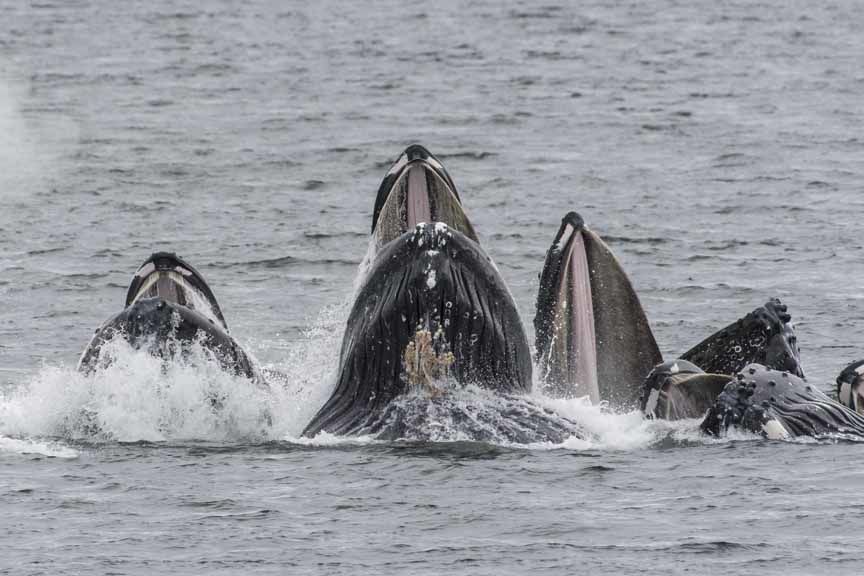 The last day of our expedition was full excitement. One of the highlights of the journey was seeing coastal brown bears in their natural habitat. We visited Pavlof Harbor, located in Chichagof Island. Here, a waterfall that leads to a salmon stream is an ideal habitat for bears to feed at this time of the year. After a morning of bear watching, we headed out to Chatham Strait where we saw a number of humpback whales. Among the different sightings we were lucky enough to the unique bubble netting behavior of humpbacks whales!