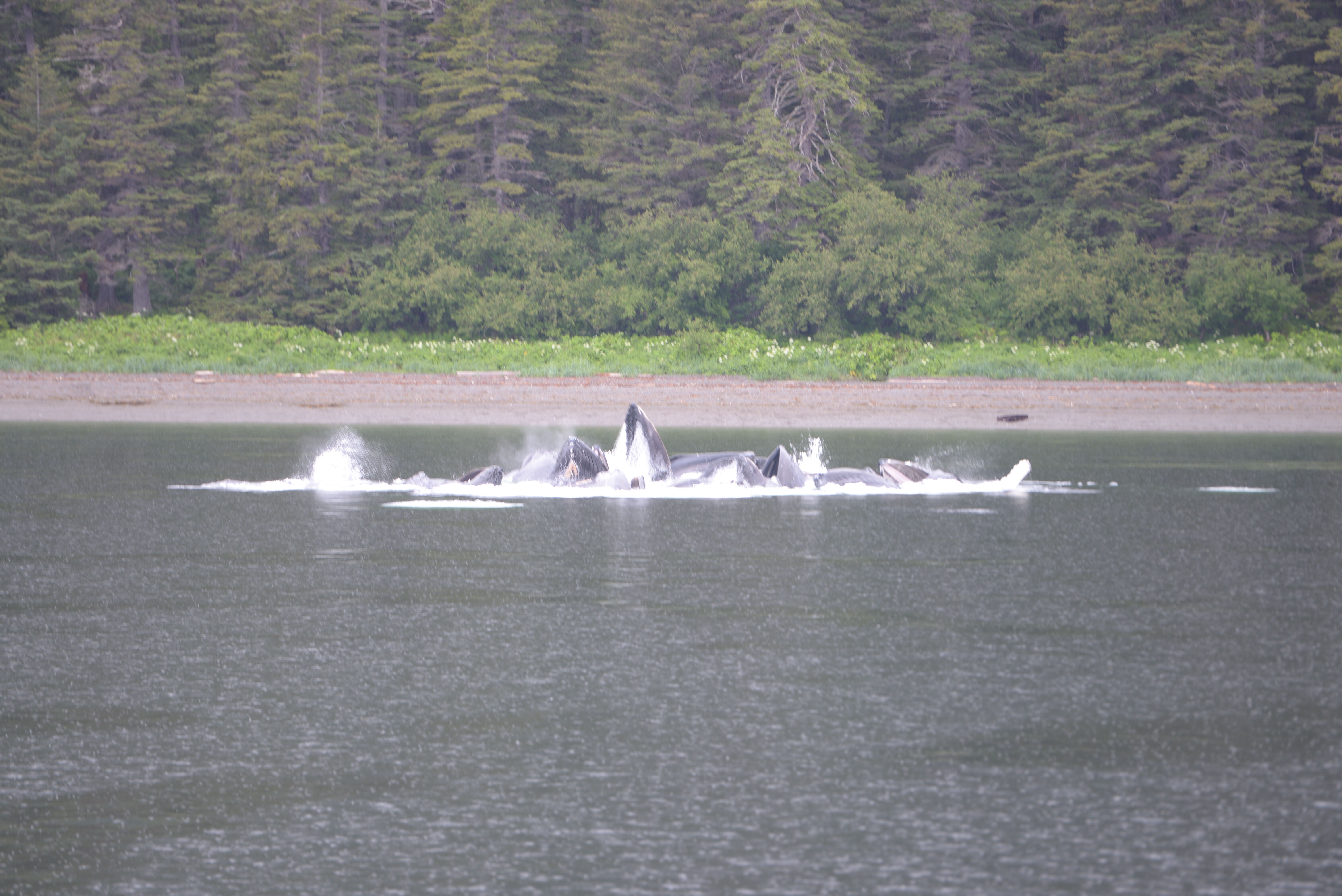 We had one whale of a day onboard National Geographic Sea Lion. Nothing could surpass the 360ﹾ views of humpback whales spouting and lunge feeding throughout the day. Early in the morning, Captain Nettles spotted some spouts in the distance and what looked like a lot of commotion on the surface of the water. National Geographic Sea Lion headed over and was able to view a group of humpback whales bubble-net feeding! Moving away to continue our adventure, we cruised to Pavlof Harbor for some kayaking and hiking. After the afternoon activities, we witnessed an opportunity of a lifetime…again! Two groups of humpback whales were bubble-net feeding. While the adults were busy feasting, a curious juvenile swam up to the bow of the vessel, giving everyone a nice look at their rostrum. After pulling away, we could see the juvenile breaching again and again as the adults nearby continued to bubble-net feed.