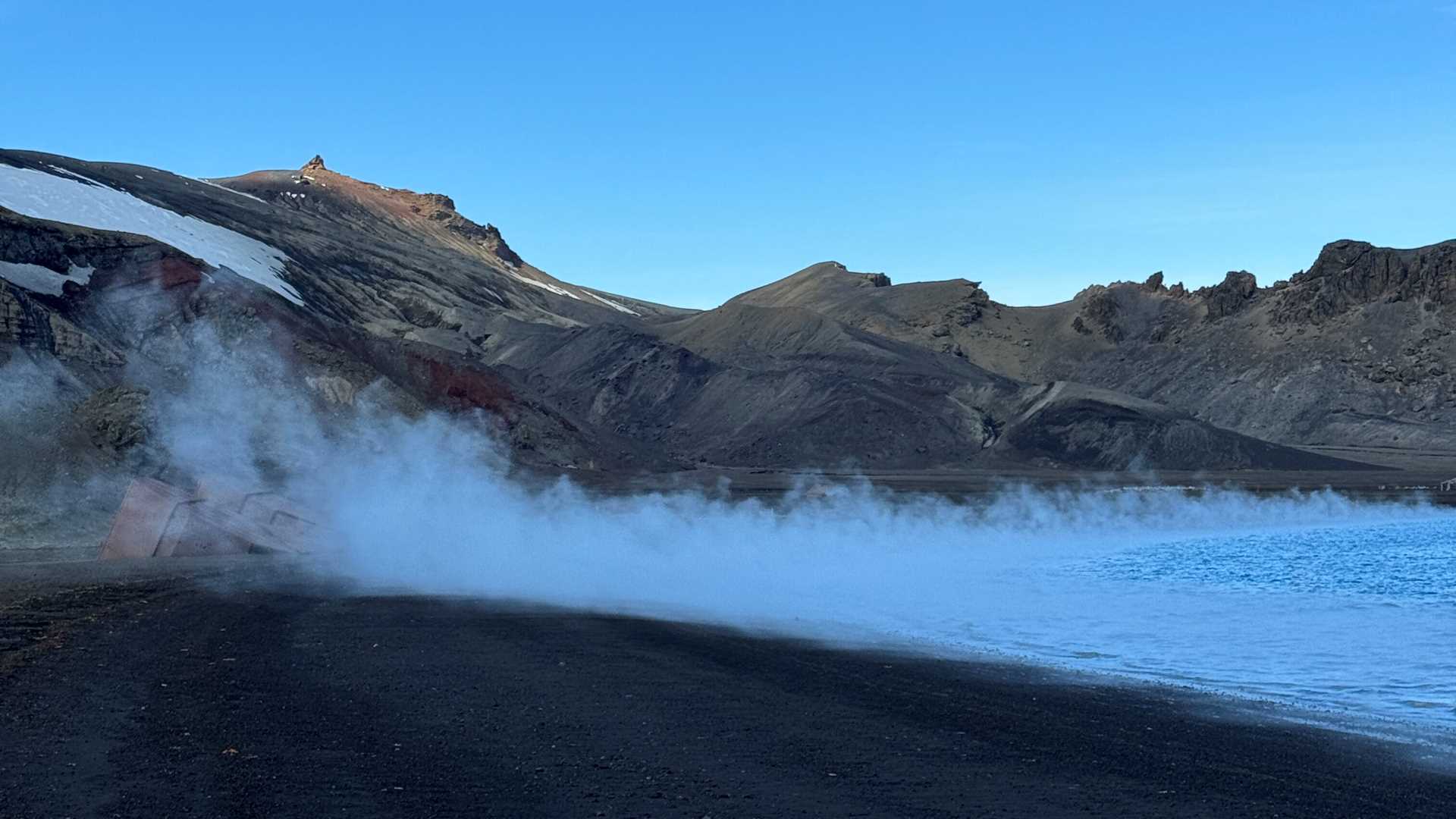 After a wonderful night of dancing and singing along to the world’s most traveled band “The Spice Boys,” we enjoyed a little sleep in. Then the most delicious brunch was served as we sailed into Deception Island. Landing in Pendulum Cove we took in the steaming beaches, the ruins of the base destroyed by the volcanic eruption, and a sleepy Weddell seal.