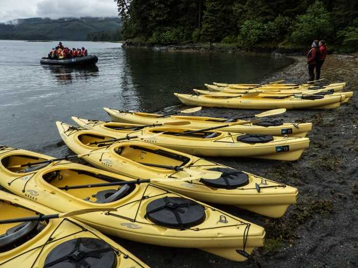 While our first full day in Southeast Alaska started with an overcast sky and intermittent showers, it didn’t dampen our enthusiasm. Eternally vigilant we scanned shore and sea for wildlife and we were richly rewarded! By the end of the day our count of brown bear sightings was at eight, we had spotted one humpback whale lunge feeding incredibly close to the shore, had seen several Sitka black-tail deer and oh, we’d even spotted a squirrel! We hiked among the rich, velvety greens of the Tongass National Forest and kayaked along the shoreline and into the hidden lagoon of Lake Eva.