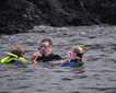 Then, as we approached, we slowly entered an incredibly beautiful cove, Scenic Cove, where a series of white-tailed ducks showed themselves off to us, as well as the high-walled cliffs with a few trees and, at the end, a small green meadow. The water of the ocean there was green, a reflection of the large amount of trees on the cliffs.