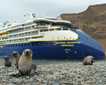 It was our first day in Patagonia. It was a pleasure to be back among some green scenery, although there was some residual sadness of having left behind Antarctica. This morning, we toured the Ventisquero Romanche and Pia Glaciers, which flow into Pia Fjord. A peaceful Zodiac ride brought us close to the front of the glaciers where we could watch calving in action, creating the icy wonderland that we were floating upon. Dressed for the weather, we enjoyed the light drizzle which filled the waterfalls and created misty layers against the dramatic metamorphic rock-scapes.
