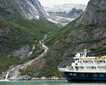 As we departed from Kelp Bay and made our way south, into Chatham Straight with naturalists on the bow as lookouts. It wasn't long before they spotted a group of humpback whales bubble net foraging. Observing this behavior is a treat- as it was only relatively recent that it was first observed, in the 1980's. We watched this behavior for about a half an hour, until the cold wind forced us inside for some warm beverages. We sailed towards the picturesque Kasnyku Falls, which we were able to get incredibly close to with our vessel.