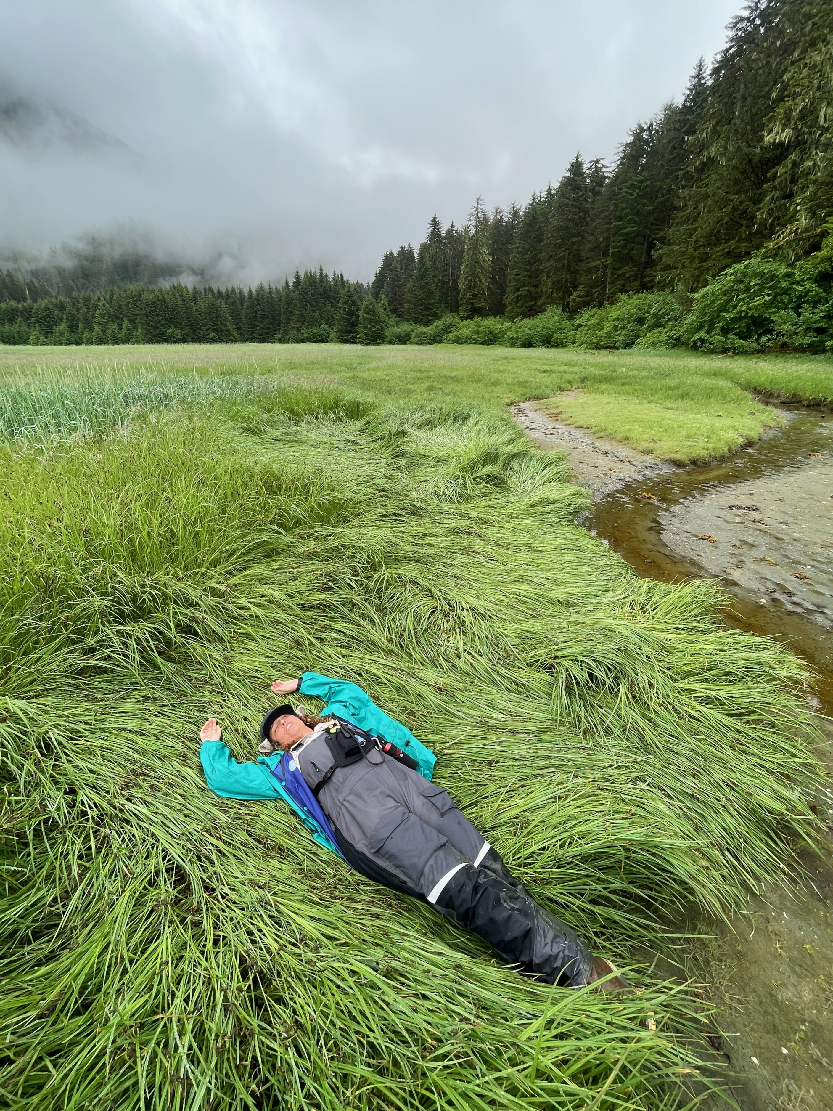 After breakfast this morning we went kayaking or hiking along the mudflats. The hikers saw chocolate lilies and lots of other flowers, and tons of bear signs. We found bear beds and tracks and dug up roots and scat and, best of all, we found “perennial” bear tracks. Perennial tracks are tracks that are reinforced every time a bear walks by because it smells the last bear that made the tracks.