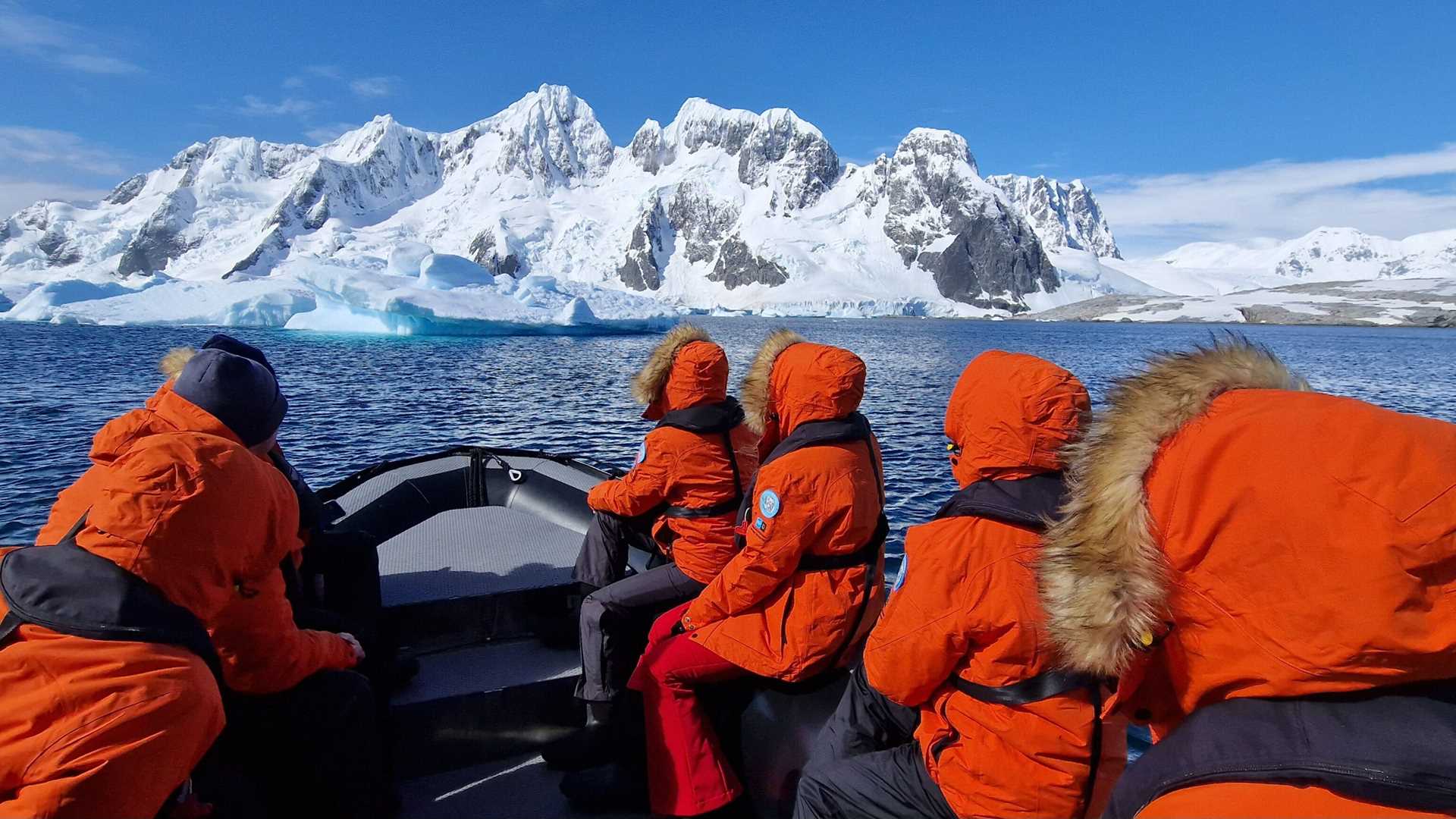 We sailed toward Booth Island and reached our expedition destination, Port Charcot. This is the location where the first French expedition led by Jean-Baptiste Charcot wintered in 1904 aboard Le Français. Today the conditions were perfect, and upon landing we hiked up to the 120-year-old cairn left by the members of this extraordinary French expedition and marvelled at the panoramic views from the top. We also lowered our Zodiacs into the water for a wonderful cruise exploring the magnificent iceberg graveyard in the waters around Booth Island and in the bay near Pléneau Island. We were more than happy to see the sunshine and blue skies unveiling the magnificent towering peaks and steep glacial cliffs, offering some of the most scenic views of our voyage.