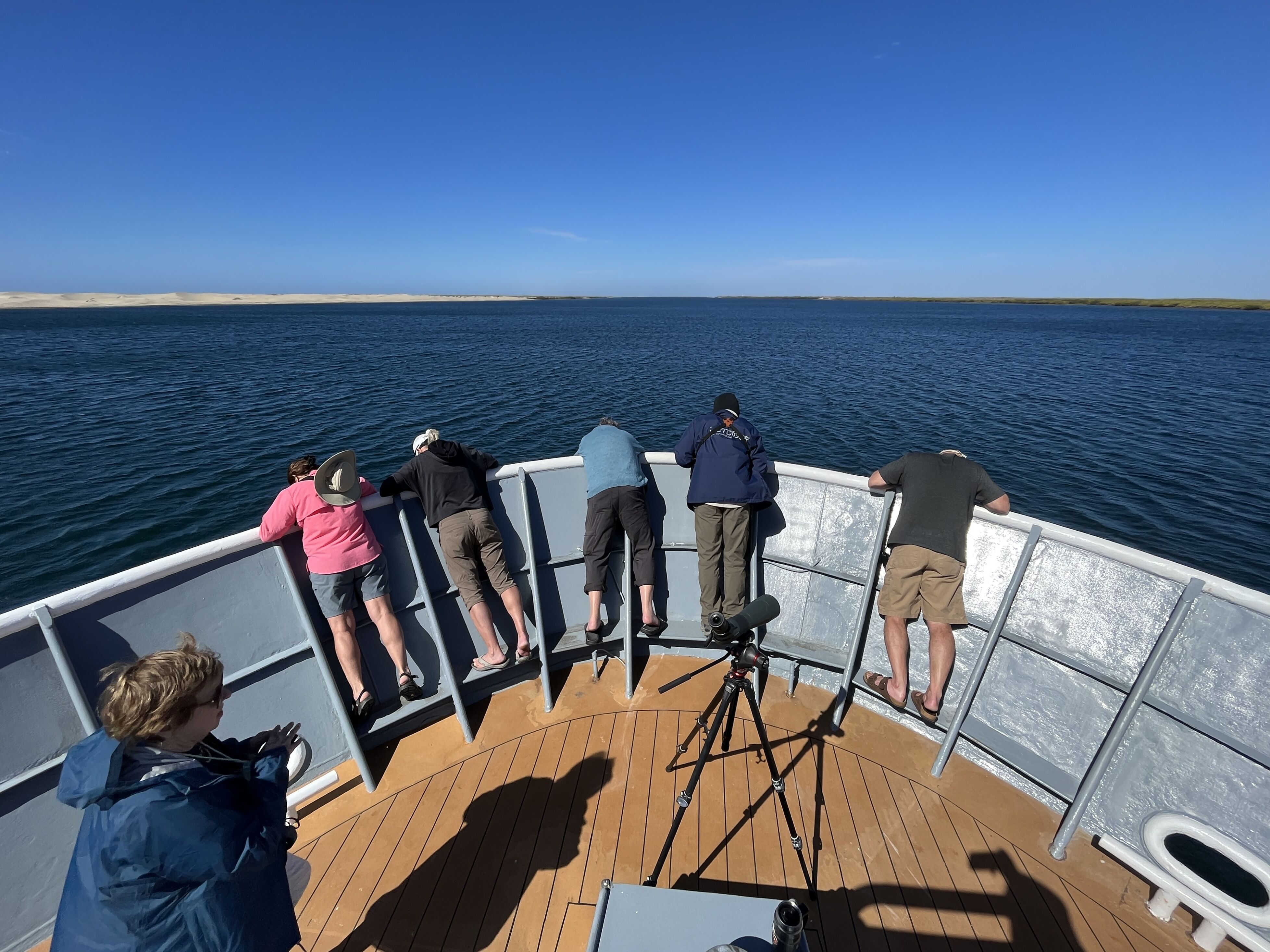 Today was a splendid morning of hikes and whale skeletons at Puerto Magdalena. Some guests trekked out to overlook the Pacific Ocean and some headed towards the fully articulated gray whale skeleton down shore. It was an early morning of soft sun and spiky cacti galore!