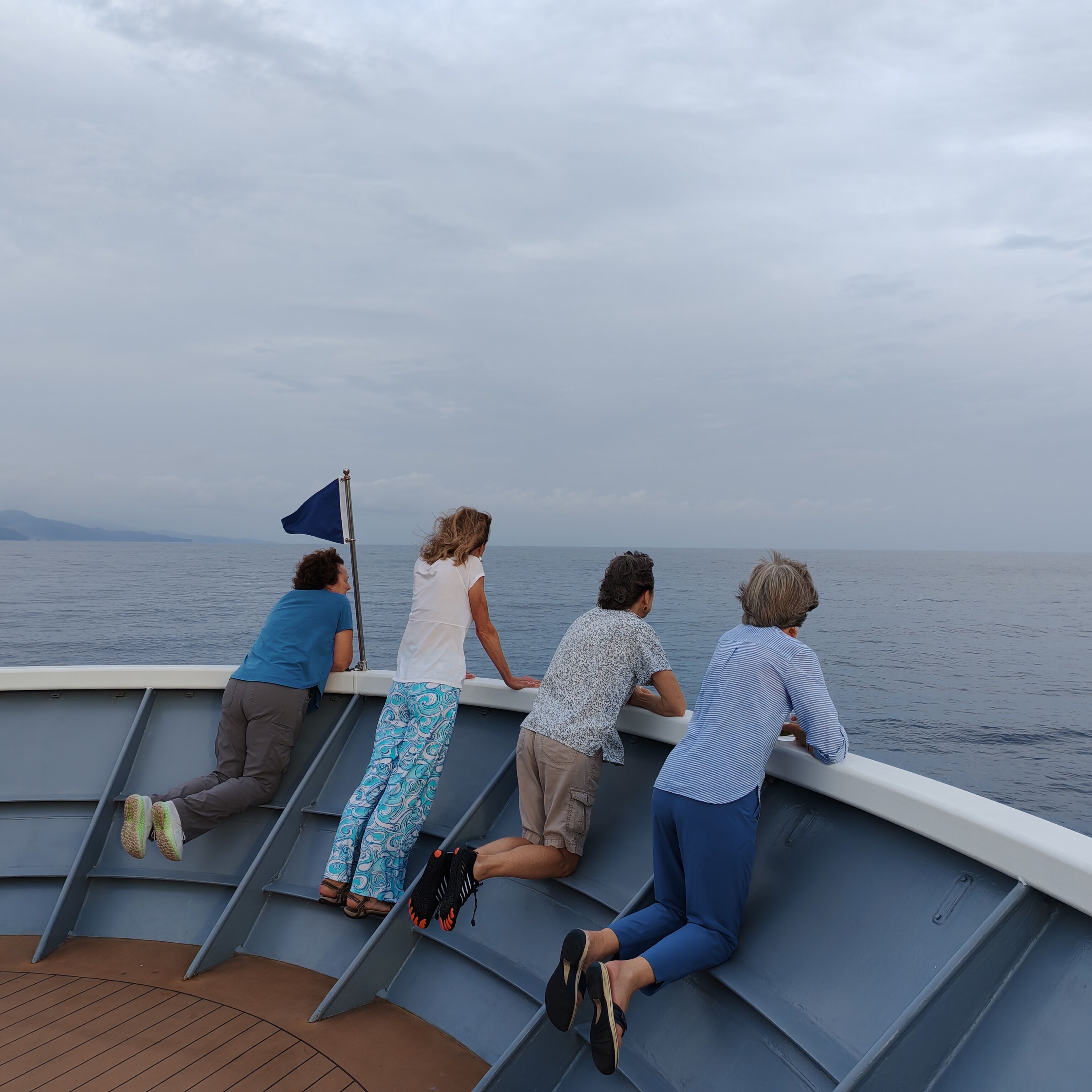 The wind was so strong overnight that we arrived slightly delayed to our destination of Puerto Profundo. The dive team went scuba diving in some gorgeous kelp forests while guests got nearly as wet during two rounds of particularly rainy Zodiac cruises. Our surrounding scenery was so majestic, and a few lucky people caught glimpses of bow-riding Chilean dolphins! Back on board, we dried out, ate lunch, and cruised to our next breathtaking destination. At Seno Glacier, we all set out to explore the fjords by Zodiac cruises and even ventured up a riverbed. The rain continued to pour, the many waterfalls gushed, and wet fingers struggled to take pictures on phones as we all became drenched. A few lifejackets even got so wet that they automatically expanded!