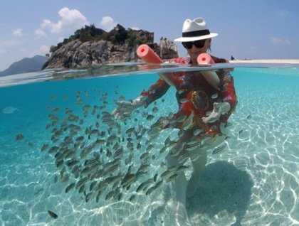 With such a magnificent backdrop and setting it would be almost criminal to have to leave so soon and thankfully the galley was able to bring the fine dining of the ship right to the shore via a delicious beach barbeque. And while it is a deserted island, such a top-notch hotel team would never desert your dessert, there was even ice cream. Now fully sated, and perhaps slightly more buoyant, there was more snorkeling and for some there was no need to stray far to see fish. A small aggregation of juvenile cardinal fish played in the shadows of those in the shallows.