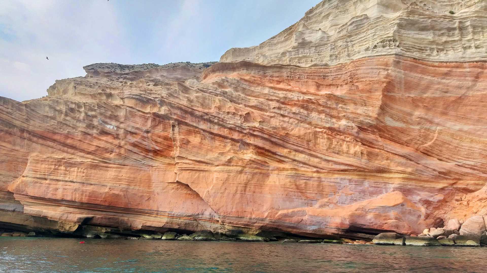 Today we were introduced to the fascinating Baja Californian Desert, after National Geographic Venture dropped anchor at Punta Colorada on the northeastern side of San Jose Island. This place is characterized by beautiful cliffs of volcanic rock, colored red, orange, pink, and ochre. There are also unique red sandstones from marine sediments (also volcanic in origin).