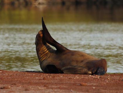 It is a rocky landing and the rocks are wet and slippery. We have to go slowly and carefully to avoid an accident in this section of the visitor site. Soon after the rocky area we reach a sandy section where marine iguanas, crabs, and sea lions invite us all to stop and enjoy their company. Now the natural history staff has a chance to share what we know about these beautiful animals.
