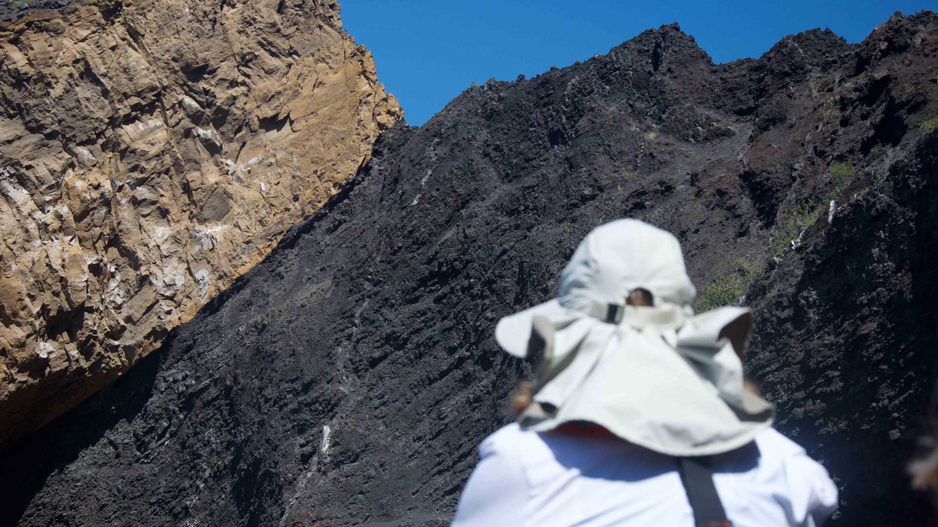 Our day began with the chance to point out a lot of interesting geological features as we enjoyed Zodiac tours along a massive flank of Ecuador Volcano on Punta Vicente Roca. In the afternoon, we took a sunny walk on Punta Espinoza on Fernandina Island. We spotted many iguanas, and a bunch of sea lions hanging around, too.