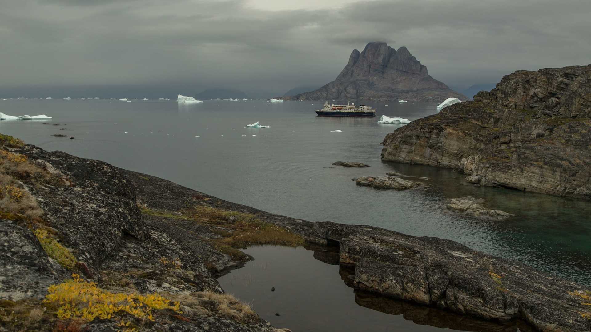 The day began with a Zodiac operation of the Inukassaat Fjord, north of Uummannaq. As we were greeted with the grand mountains of the west Greenland fjords, the icebergs made loud sounds of calving and the variety of birds flying over the landscape reminded us how vast the fjord is. For the afternoon activity, National Geographic Endurance proceeded further into the Kangerlussuaq Fjord where there was a landing site with an old hut used by the Greenlandic Inuit. The hikes that followed allowed us to get a clear view of the valley with the glacier and the tundra flora of the arctic autumn, giving us its last display of colors before winter’s descent. After the daily recaps and another lovely dinner, the evening movie, “The Eskimo Experiment”, was shown as our cultural ambassador Peter Freuchen provided some context to the movie.