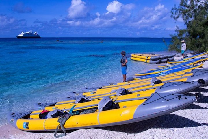 Our last day of our expedition took us to Rangiroa, the largest atoll in French Polynesia. Its name can be translated as “Big Sky,” and the name suits this place, as the vast lagoon of this atoll is so sprawling that you can’t see the other end.