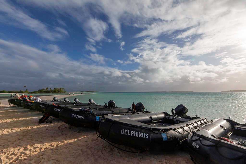 National Geographic Orion spent the entire day on Tahanea Atoll. The morning was full of adventures on land. Some the guests walked around a small motu and its abandoned village. The rest of us took Zodiacs across the lagoon to look for rare birds. In the afternoon, everyone strapped on their masks and fins to drift snorkel in the crystal-clear waters of the pass. At sunset, the ship sailed for open seas.