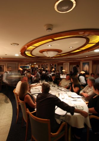 Shortly after leaving the killer whales behind us we had another marvelous encounter—a group of humpback whales engaged into cooperative bubble-net feeding! As Dr. Szabo explained less than two hours before, there are only a few dozen humpback whales out of a population of about 3,000 individuals that spend the summer in Southeast Alaska that practice this most interesting feeding technique. Finding a group of them was great luck and allowed us to admire those huge mouths breaking the surface together as herring jumped for dear life trapped inside a curtain of bubbles.