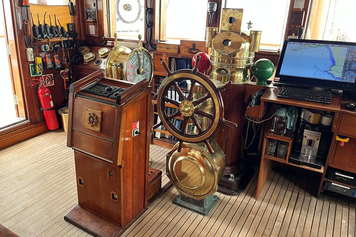After breakfast, Lindblad Historian Tom Heffernan both educated and delighted guests with his talk on the decipherment of Linear B script. By this time, Sea Cloud was in the lee of Lipari Island; with little wind and very low sailing speed in calm seas, we could offer a Zodiac photo safari around the vessel. Guests were thrilled to get photos from the water of the magnificent Sea Cloud under full sail!