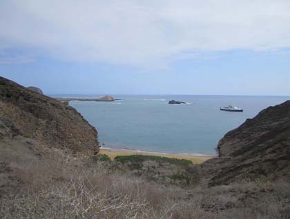 Today was our last full day in the magical Galapagos National Park yet our visitor’s site was completely new; it was like walking on the surface of a different planet. Punta Pit is the remnants of a giant tuff cone with an inorganic sandy beach at its base full of small crystals of olivine. Moreover some of the species of animals viewed at this site were endemic specifically to San Cristobal Island, therefore totally new for all of our guests.