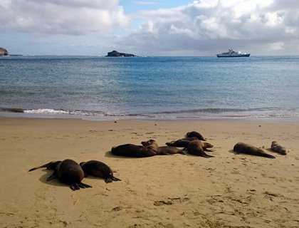 As we returned to the beach, Galapagos sea lions were resting and relaxing on the beach, and only a few were swimming. We decided to join them in the water, and we had a lot of fun playing with them.