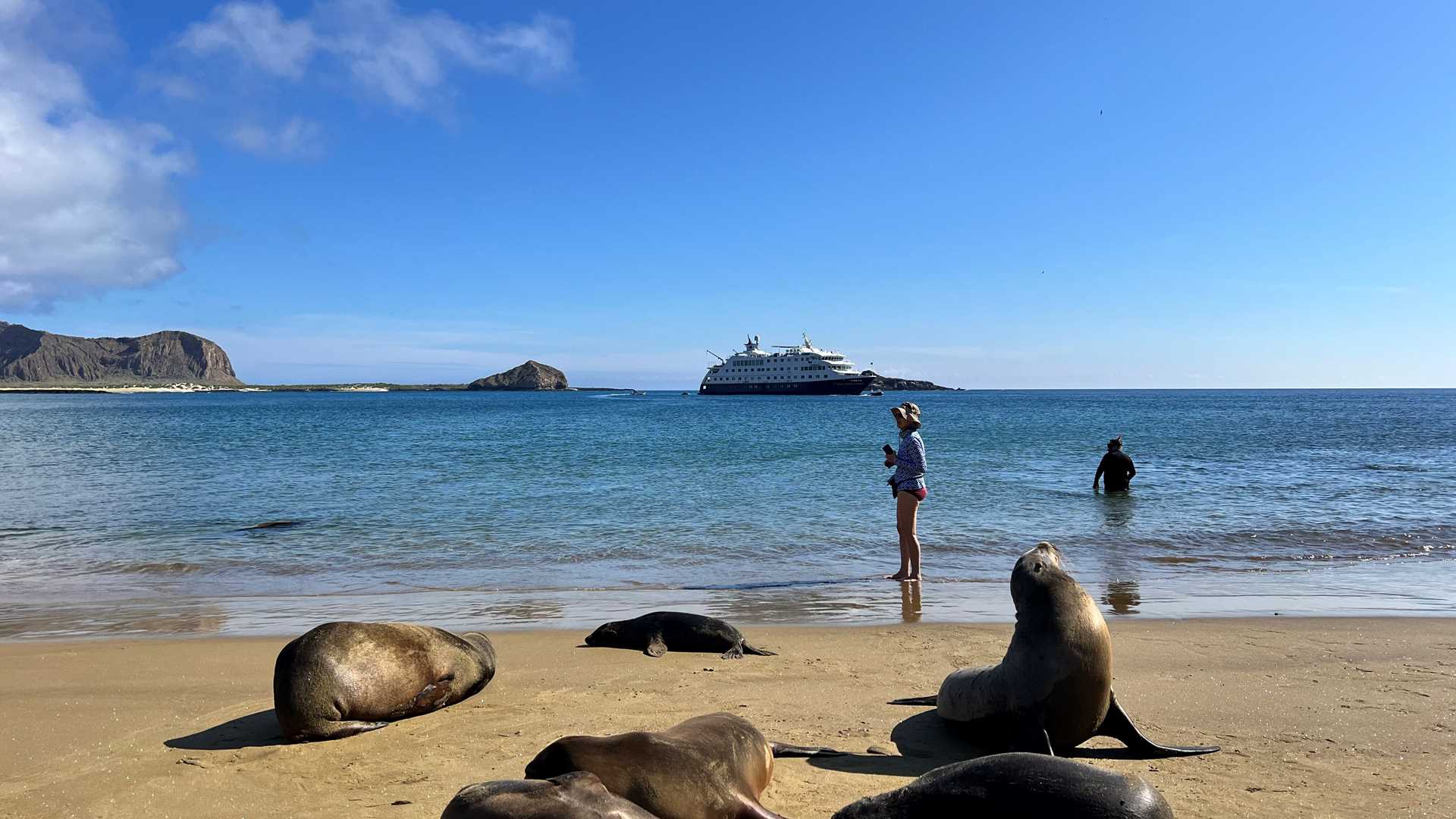 During our afternoon navigation, we spotted dolphins riding the ship’s wake. Then we visited Cerro Brujo, one of the most beautiful white sand beaches of the Galapagos Islands. The beach is not far from Puerto Baquerizo Moreno, from which we are departing tomorrow. We will take with us all the memories in our hearts.