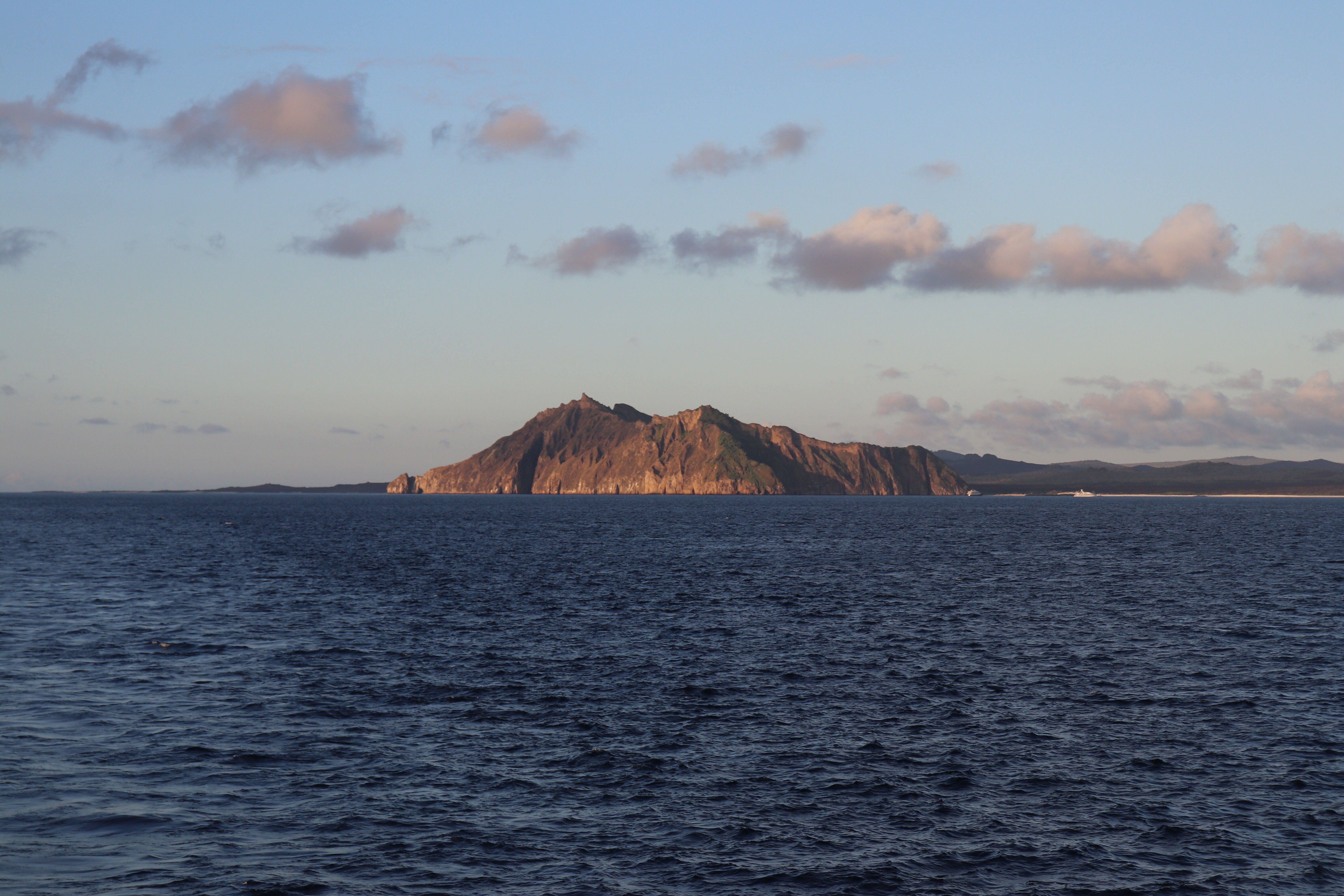 As the sun dipped lower, we explored Kicker Rock by panga. Towering nearly 500 feet above the sea, these twin tuff cones cleaved by a narrow channel offered dramatic views both above and below the surface. Bottlenose dolphins were traveling along the coastline of San Cristobal while our guests enjoyed their presence from the decks of National Geographic Gemini.