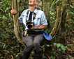 Our day began with a pre-breakfast walk onto Espumilla Beach on San Salvador Island. As we landed we encountered a female green sea turtle returning to the sea after laying eggs last night. We walked through an amazing button mangrove forest on our way to climb up to the top of the ledge of a volcanic cone. At the top of this hill we saw several juvenile Galapagos hawks scattered around the trees as well as several other species of land birds such as Galapagos mockingbirds, and small and medium ground finches.