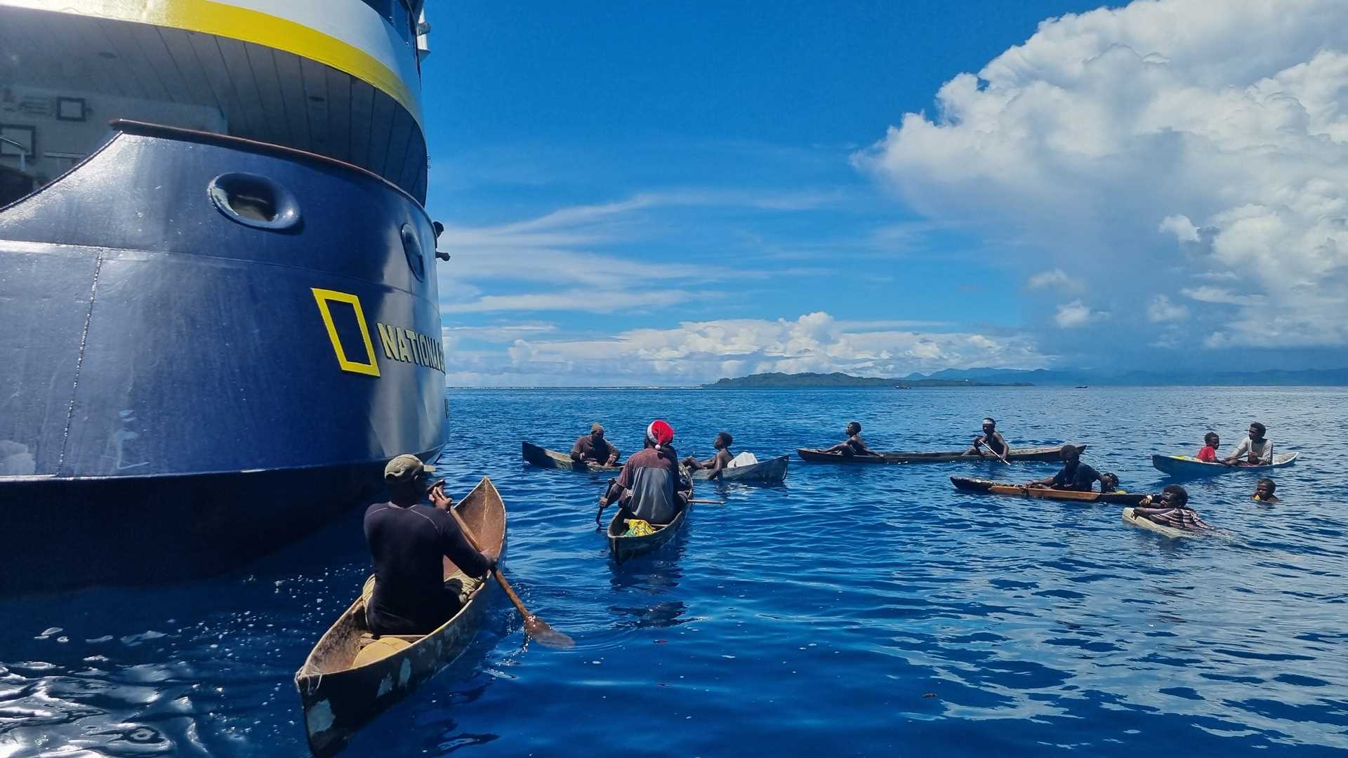 The last day of activities on our expedition was at the picturesque Santa Ana Island in the Solomon Islands. The shoreline of this small tropical island was lined with dense rainforest and coconut trees right up to the beach. Surrounding the Island was a vibrant fringing reef with a spectacular variety of healthy corals.