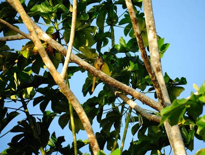 Our guides also showed us a couple large male land iguanas that are part of an iguana breeding project, and then they pointed us to the main road to town. Off we all went at our individual speeds, some of us stopping to shop along the way in one or more of the many colorful boutiques. We found the fish market easily and enjoyed watching and photographing the flock of juvenile pelicans and a couple fat sea lions begging for fish scraps. When we reached The Rock café we sat for a moment and enjoyed a glass of juice or ordered a snack. Naturalist Walter took a dozen of our guests on the first bus at 1030 up to the highlands town of Bella Vista. Here we climbed onto mountain bikes and pedaled three miles – mostly uphill! – to a small farm, El Trapiche, where we all gathered and learned how organic coffee and sugar cane are grown here and processed. We enjoyed multiple cups of coffee, and sugar cane juice with or without a splash of either sour orange juice or cane liquor!