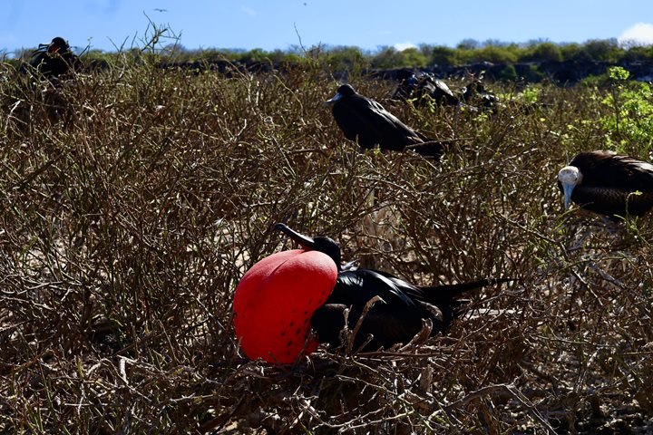 We spent a second day on Santa Cruz Island, the second largest island of the Galápagos Archipelago. This morning everything looked different from yesterday, the town of Puerto Ayora was at the other side of the island; the northern part of Santa Cruz was still green, this was the end of the rainy season. An early hike was offered at Cerro Dragon, where we observed common stilts, greater flamingos, marine iguanas, Galápagos flycatchers, yellow warblers, Darwin finches and Galápagos land iguanas. As an option, a Zodiac cruise was available, a delight for photographers who were able to capture blue-footed boobies resting on the lava rocks together with brown pelicans and plenty of colorful Sally Lightfoot crabs. The afternoon was spent at Eden Islet, another great place for a Zodiac cruise and a great kayaking opportunity. Every time we go out, there is something new to see and that is what I love about these excursions; wildlife is so unique and friendly here, and if you take your time you will see a whole lot and the animals will come to see you. This is what makes Galápagos magic!